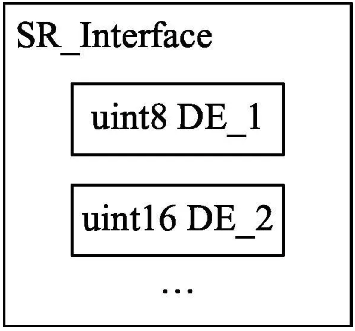 该类型接口中定义了一系列的数据元素(Data Element,DE),并且彼此相互独立。如下图所示,该SR接口中定义了两个数据元素,名字为DE1和DE2,并且每个数据元素的数据类型各不相同。