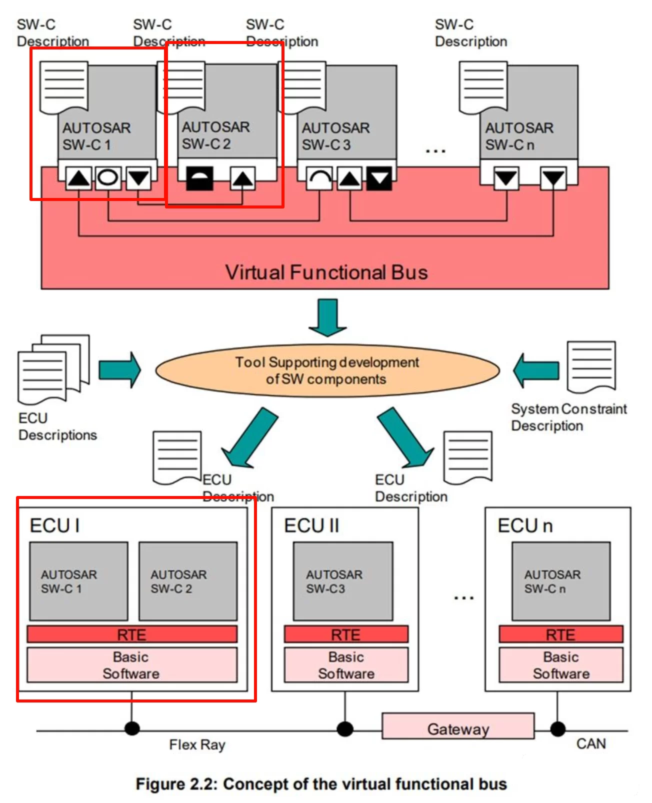 Virtual Functional Bus(虚拟功能总线),在AutoSar中,应用都是互连组件的组成。