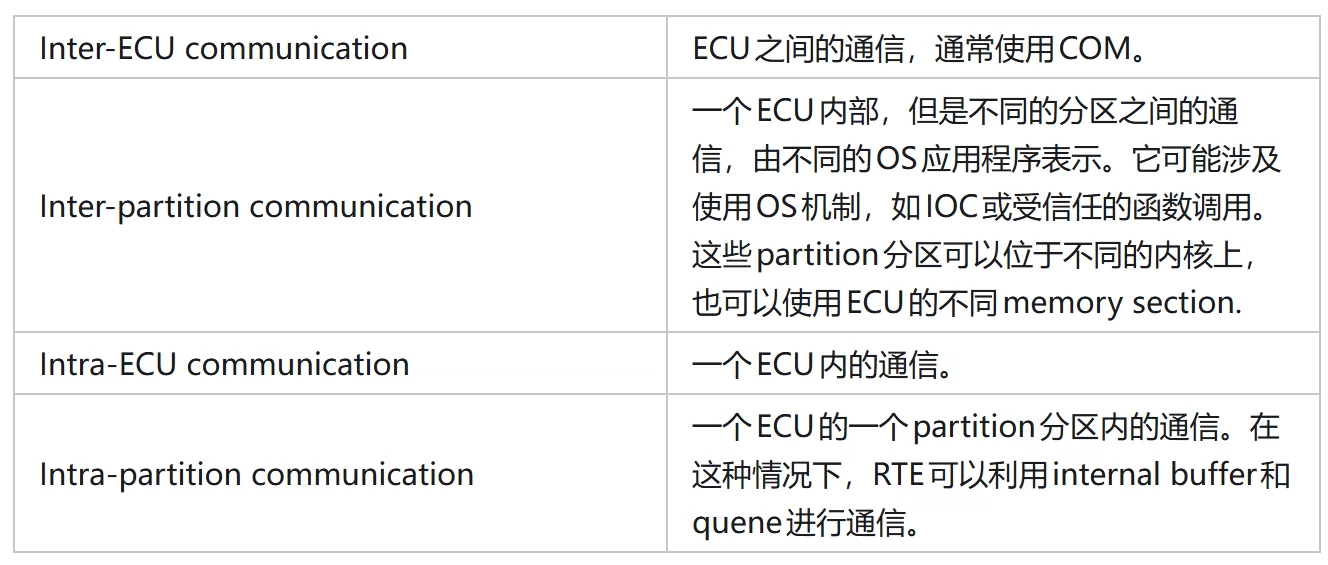 也就是说,每个应用组件可能在同一个ECU中实现,也可能跨越多个ECU,那么就分成两种通信接口,又出现不同情况了,怎么办呢?