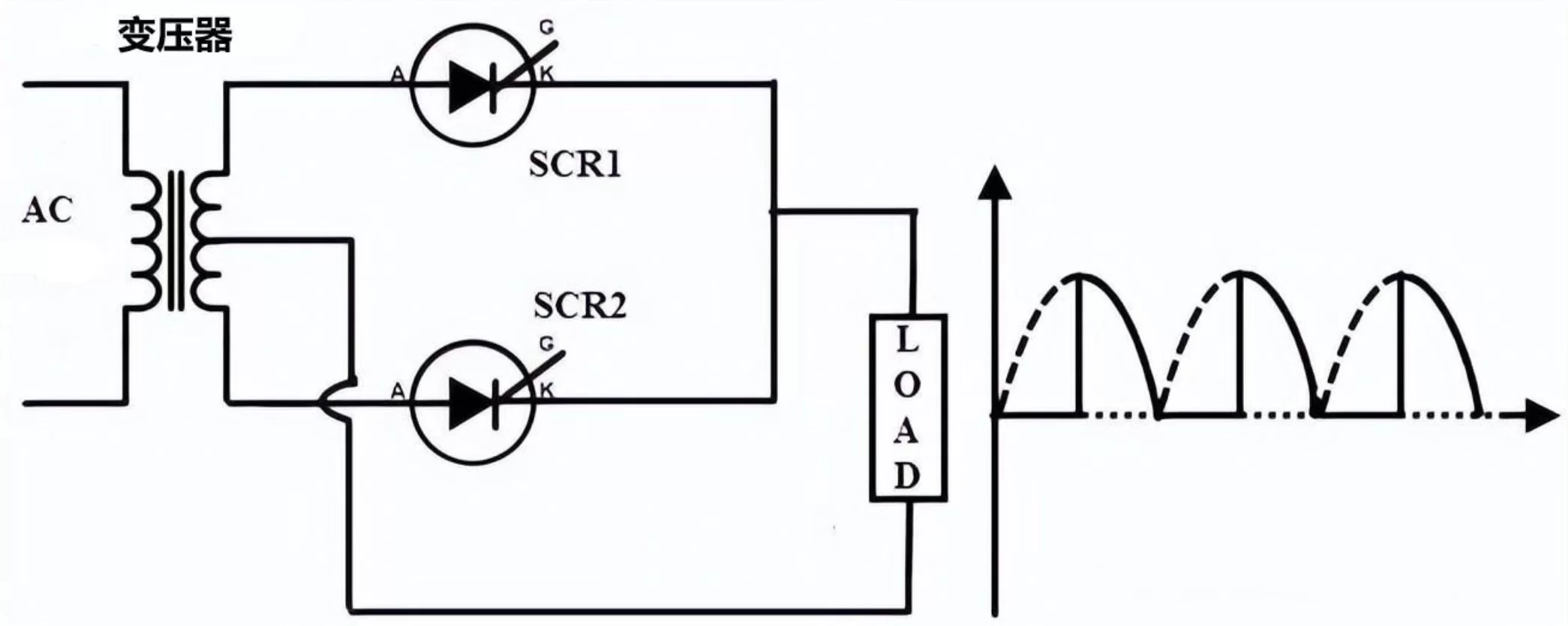 - 没有电流流入栅极,晶闸管关断,阳极和阴极之间没有电流流动。